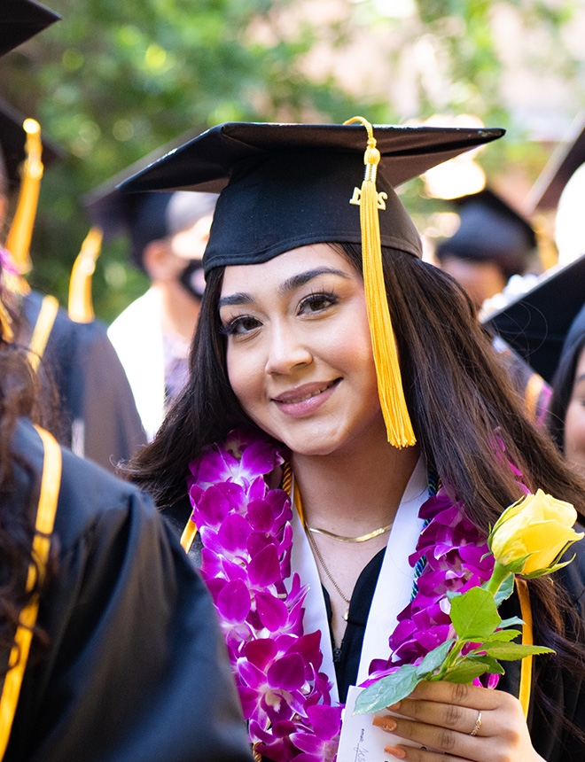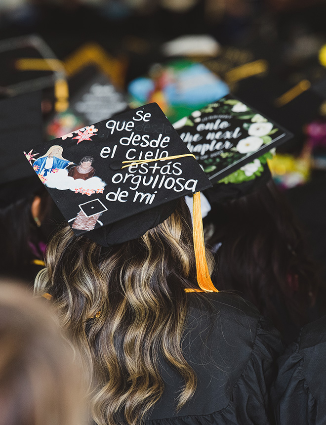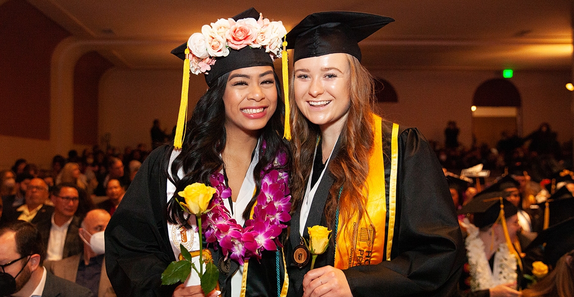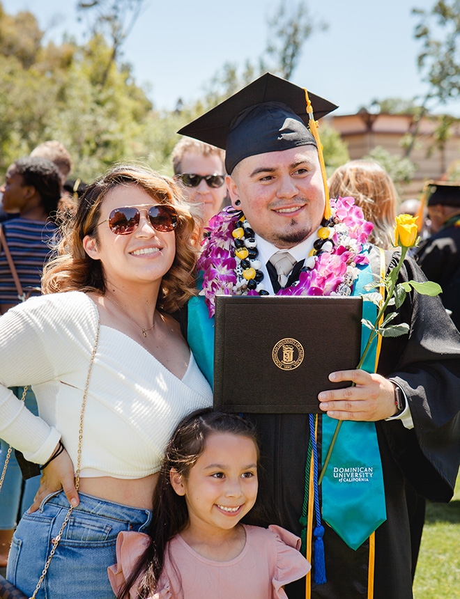 The robes, hoods, caps, cords, medallions, and other accessories worn by students, faculty, and staff comprise “academic regalia.” Review Dominican’s Academic Regalia guide for details on what graduates wear for the Commencement ceremony.