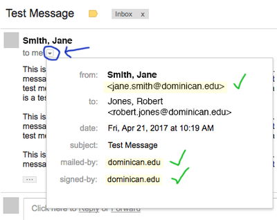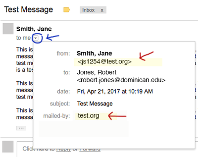 Gmail provides tools for verifying the details of email messages. The easiest of these to use is the drop down arrow next to the sender. Click on it to reveal details. As you can see below, one quick test is to see if the email address of the sender is actually the real address you would expect.