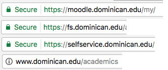 Real Dominican websites will start with dominican.edu or (something).dominican.edu right after HTTP or HTTPS. Below are examples: