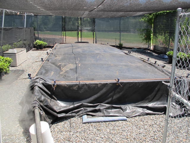 The primary purpose of this project is to determine lateral spread of P. ramorum from pot leachate through nursery substrates and to inform managers about the optimal distance for implementing control actions to prevent the spread of P. ramorum inoculum through three nursery bed substrates: gravel, soil, and soil covered with weed cloth. Recent requirements for the destruction and quarantine radius surrounding plants that are confirmed infected are 2m and 4m, respectively (USDA 2020). This project will determine if these radii are sufficient for common nursery substrates.